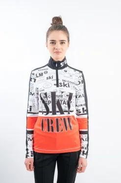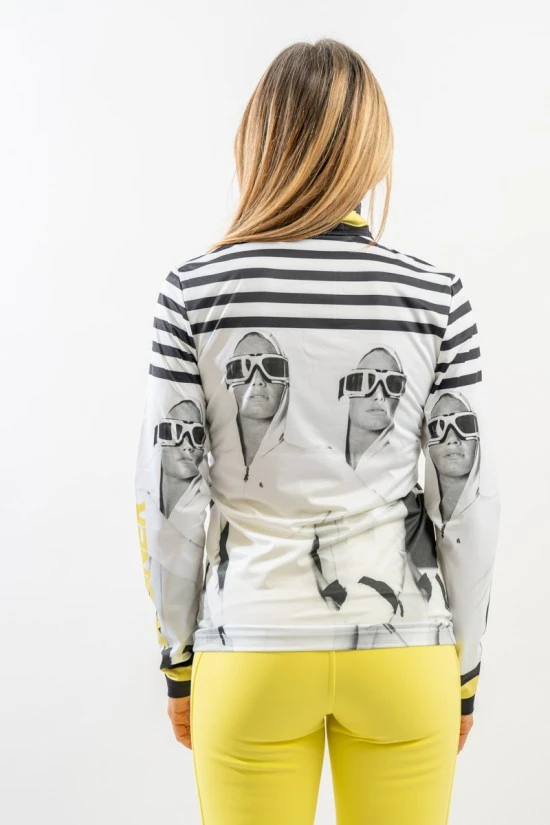 Beline è il sottotuta mezza zip di Bogner realizzato in tessuto esterno elasticizzato e micro felpato. La stampa dal gusto retrò ed i dettagli in contrasto di colore donano al capo vivacità ed unicità. Caldo e traspirante è ideale sotto la giacca da sci.