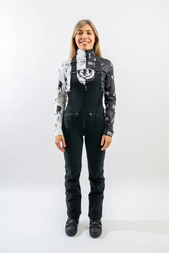 Salopette sci Cari Bib di Bogner, performante, slim fit calda e traspirante. Realizzata in tessuto Softshell 4-way full stretch foderato in morbido poliestere, per una sensazione di calore maggiore ed un comfort senza eguali. La costruzione 3D garantisce ottima aderenza e ne esalta la vestibilità. Ideale per chi ricerca elevate prestazioni senza rinunciare a comfort e stile.