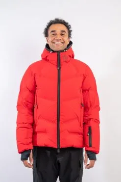Jesse è la giacca sci disegnata da Thylmann e firmata Bogner. Il tessuto esterno, 4-way stretch, garantisce comfort e massima libertà di movimento assicurando una perfetta vestibilità. Si compone di una parte in tessuto elasticizzato sulla parte frontale, removibile con cappuccio, per una maggior protezione. Imbottita in piuma e morbida ovatta, assicura calore ed isolazione ottimali. Il boudin senza cuciture e le cuciture termo nastrate massimizzano la protezione da vento ed acqua. Caratterizzato dalla trapuntatura grafica e dagli inserti in contrasto di colore, è grintosa e funzionlale, perfetta per affrontare le piste in sicurezza e con stile.