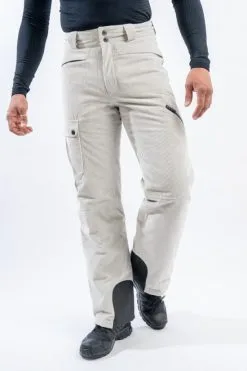 Pantalone in vita in velluto a coste elasticizzato. Arrichito dalle tasche laterali applicate chiuse da zip waterproof. Pensato per lo sci e gli sport sulla neve.