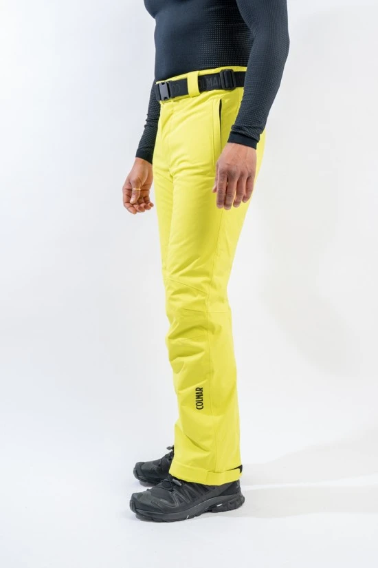 Pantalone sci realizzato in materiale ecosostenibile appartenente al progetto Colmar Green Path per il rispetto dell’ambiente. Tessuto esterno ed ovatta stretch garantiscono massima libertà di movimento e comfort termico ottimale. Vestibilità regular per un pantalone sci confortevole e pratico. La cintura in vita permette al capo di adattarsi al meglio alla figura. Rifinito con ghetta antivento e antineve è ottimo sulla pista in ogni condizione.
