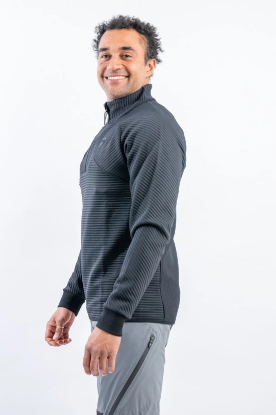 Sottotuta mezza zip caldo, traspirante e confortevole. Tessuto elasticizzato con struttura a coste che garantisce l’ottimale trasporto dell’umidità all’esterno. Termoregolatore, è ideale sotto la giacca da sci e per praticare ogni sport all’aria aperta.