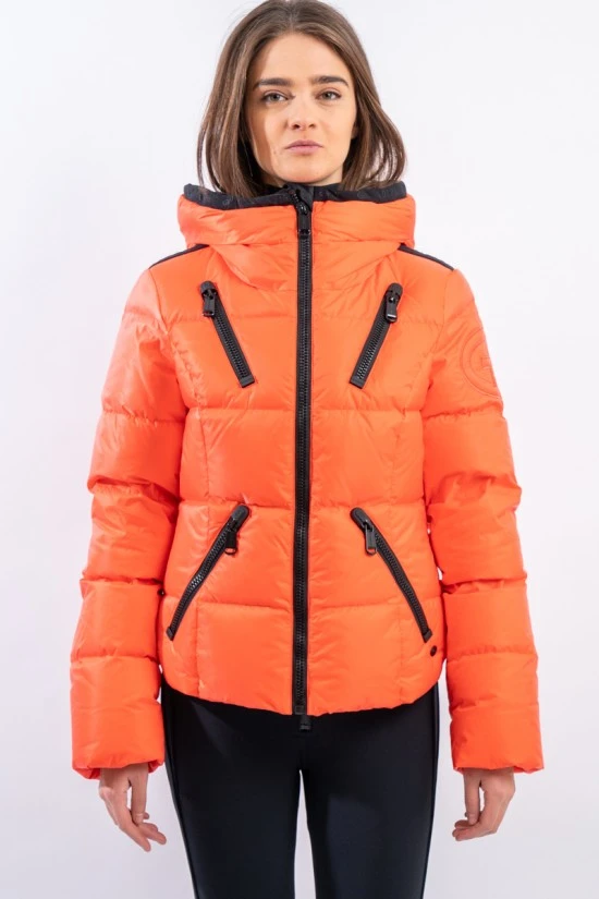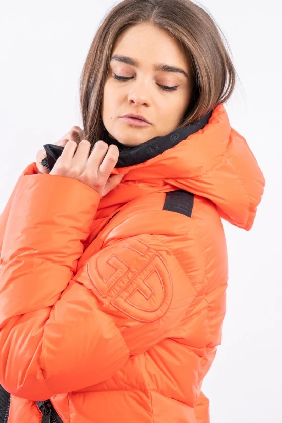 Piumino Chill di Goldbergh lunghezza media. Cappuccio fisso con collo alto. Caldo e sostenibile è imbottito in piuma ed è realizzato con materiali riciclati. Caratterizzato da un ampio boudine e dalle zip metalliche oblique che gli conferiscono un look grintoso e vivace. Vestibilità regular.