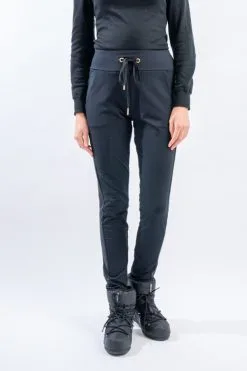 Pantalone in tessuto elasticizzato con banda laterale in tessuto lucido. Coulisse in vita regolabile. Vestibilità slim. Ideale per l’aprè ski e per gli sport all’aria aperta.