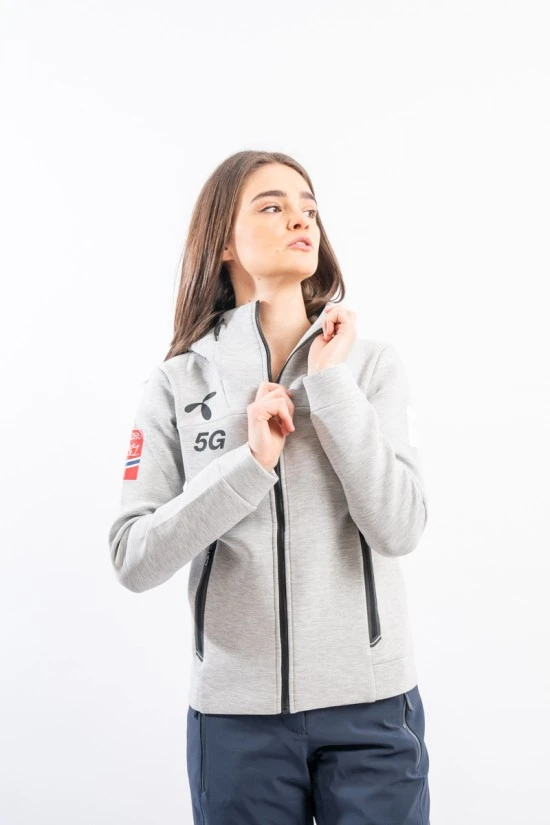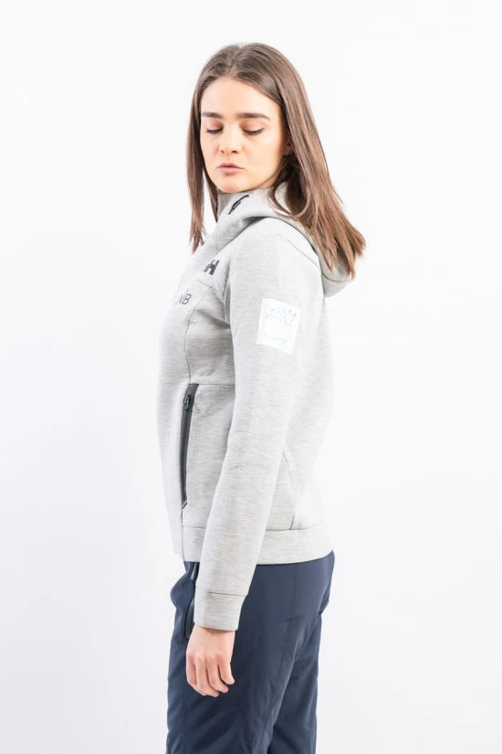 Fullzip realizzata in tessuto high tech Ecofriendly, più del 50% del materiale impiegato è riciclato. Funzionale, è perfetta da indossare per praticare sport all’aria aperta o sotto la giacca da sci. Fullzip e cappuccio regolabile per poterla adattare anche in condizioni più rigide.