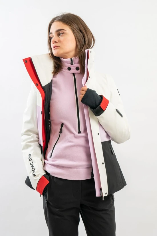 La giacca Hainet di Moncler è un capo ad elevate prestazioni: termoisolante, impermeabile e antivento. Realizzata in tessuto 4 way stretch con cuciture termonastrate e l’imbottitura in ovatta PrimaLoft® Gold garantisce un’eccelente termicità. La ghetta antivento protegge dal vento, mentre le zip impermeabili sono garantite contro la neve.