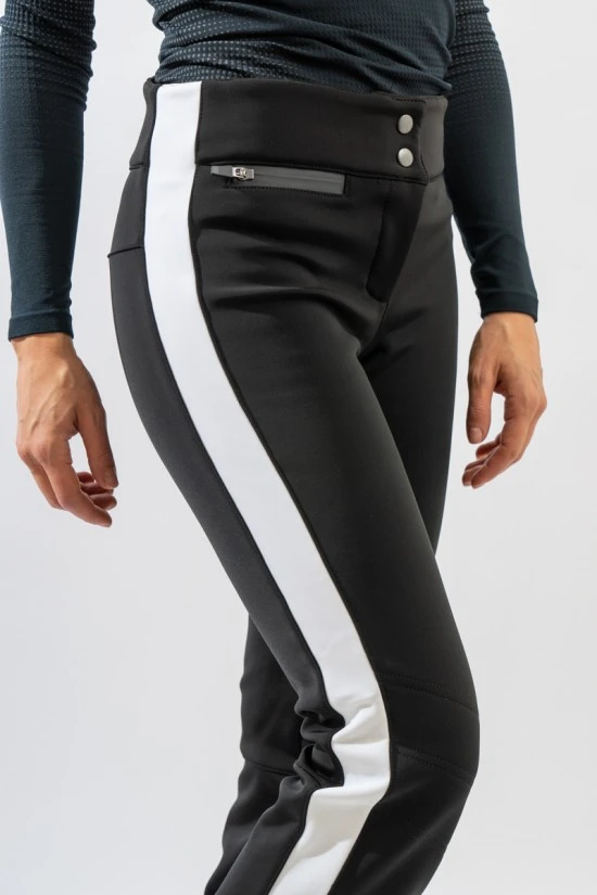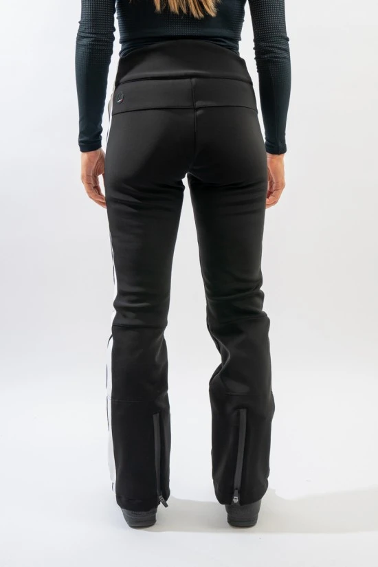 Pantalone sci in Schoeller svizzero. Resistente al vento e all’acqua è altamente traspirante e confortevole grazie all’alta elasticità del tessuto. Alto in vita, slim fit e performante. Look sportivo dato dalla fascia in contrasto di colore che corre lungo la lunghezza. A maggior protezione dagli agenti atmosferici la ghetta al fondo. Foderato internamente in fleece è caldo e perfetto sulla neve anche nelle giornate più fredde.