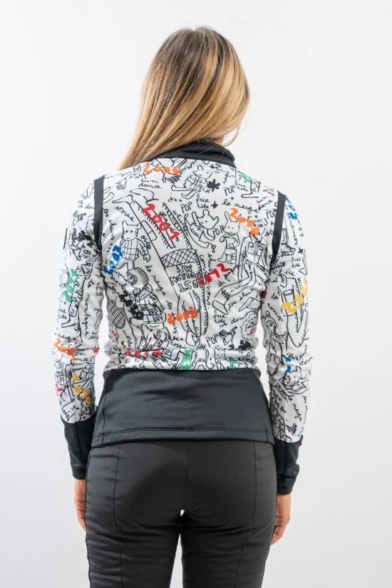 Celebrativo dei 20 anni di collaborazione con lo stilista Jean-Charles de Castelbajac, il sottotuta Climi ne rappresenta appieno la creatività. La stampa grafica è divertente e vivace. Full zip con collo in piedi. Caldo è foderato in morbido pile e la fascia elastica al fondo aderisce perfettamente trattenendo al meglio il calore. Ideale sotto la giacca da sci o per praticare ogni sport all’aperto.