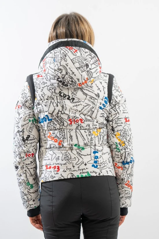 Cosmic è il piumino appartenente alla linea celebrativa dei 20 anni di collaborazione con lo stilista Jean-Charles de Castelbajac. Caratterizzato dalla stampa grafica su nylon raffinato e morbido, abbinato ad inserti in tessuto a contrasto. Caldo grazie all’imbottita in pregiato piumino 90/10 e all’ampio cappuccio foderato in ecofur, per una sensazione di morbidezza e calore ancora maggiori. Le varie opzioni antineve garantiscono protezione ed isolamento ottimali. Il capo ideale per affrontare ogni pista con stile ed originalità senza rinunciare a comfort e sicurezza.