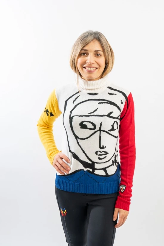 In questo capo Rossignol è rappresentata tutta la creatività dello stilista Jean-Charles de Castelbajac. Il maxi ritratto ricamato sul davanti è abbinato al fondo e alle maniche colorate nell’iconica palette cromatica JCC. Realizzata in morbida e pregiata lana merino è caldo ed avvolgente. Ideale sotto la giacca sci o come complemento per ogni tuo look sulla neve.