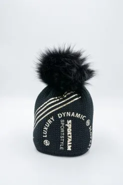 Berretto realizzato in cotone di Sportalm impreziosito dal pompon in vera pelliccia certificata Sagafurs e dalle decorazioni stampate in glitter dorato. Caldo grazie al rivestimento in fleece. Raffinato ed elegante, è accessorio indispensabile per rendere il tuo look chic anche sulle piste.
