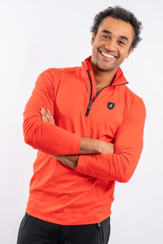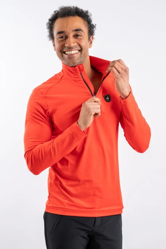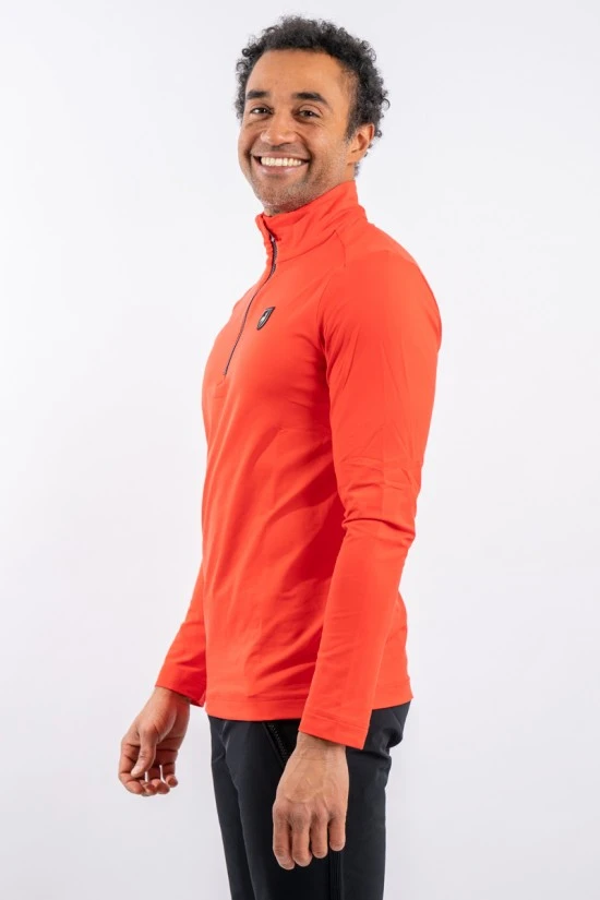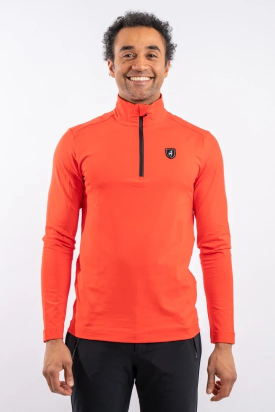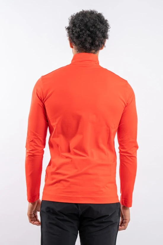 Sottotuta realizzato in tessuto tecnico elasticizzato e felpato all’interno. Mezza zip in contrasto di colore e logo istituzionale cucito sul petto.