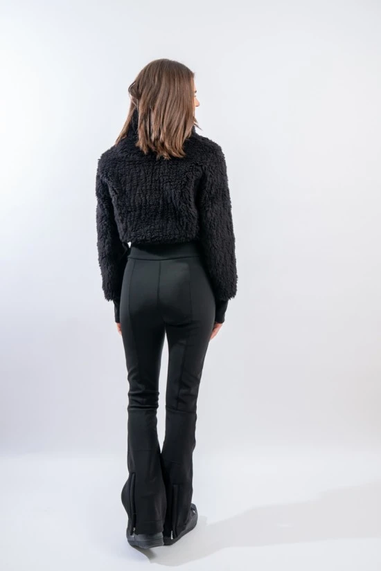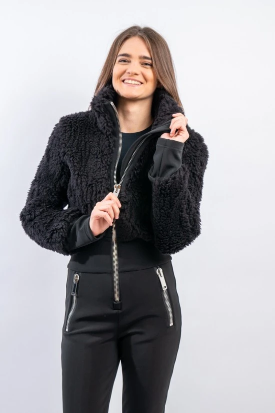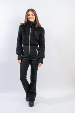 Tuta intera Eva firmata Toni Sailer. Realizzata con un mix di materiali sofisticati e funzionali. La parte superiore in lana vergine, lavorata ad effetto orsacchiotto, si fonde con la parte inferiore realizzata in Schoeller Svizzero, elasticizzato, idrorepellente ed antivento. Il collo in piedi e l’interno completamente foderato, offrono una sensazione di piacevole calore e morbidezza. A completare il capo le zip metallic look e la luminosità del tessuto. Moderna e pratica è un Must have per l’inverno 2022-23, per affrontare con stile ogni pista.
