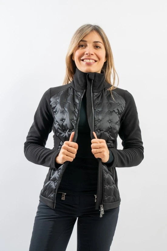 Sotto giacca Linda by Toni Sailer. Realizzato con un mix di materiali che lo rendono funzionale e pratico in ogni occasione. Il pile tecnico incontra il nylon lucido caratterizzato da una particolare trapuntatura a rombi. Confortevole e caldo è imbottito, davanti e dietro, in morbida ovatta. Altamente traspirante ed isolante è ideale indossato da solo o come strato isolante aggiuntivo.