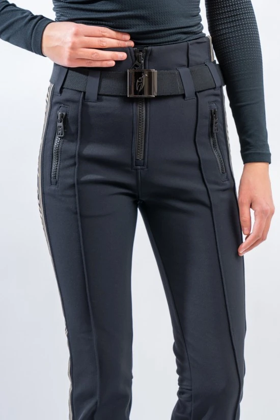 Pantalone sci Mila logo by Toni Sailer. Vita alta regolabile con cintura. Realizzato in tessuto 4way stretch abbinato alla membrana Dermizax, assicura libertà di movimento, impermeabilità e traspirazione. Le cuciture sagomate disegnano la figura e la fascia loggata che corre lungo tutta la lunghezza vivacizza il capo. L’interno è foderato in morbido pile per una sensazione di calore maggiore. Dotato di ghette al fondo per una massima protezione da vento e neve. Perfetti sulle piste e per un’escursione sulla neve.