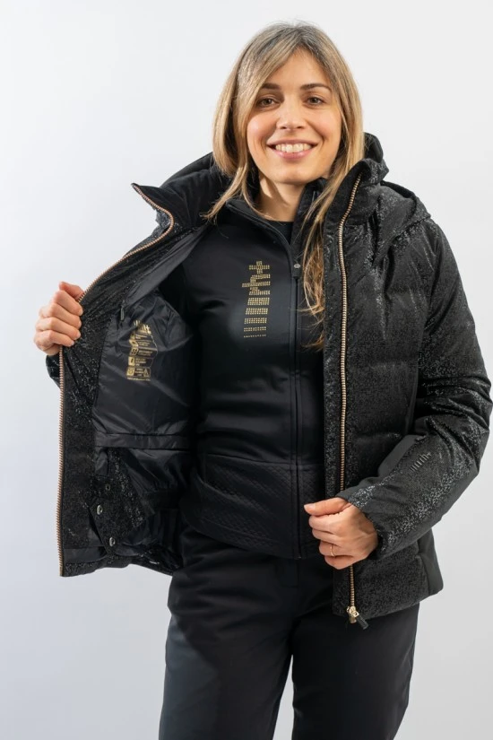 Fenice è il piumino sci firmato Zero RH realizzato in elegante tessuto riflettente, morbido e confortevole. L’imbottitura veiene incanalata in tunnel fissati al tessuto, per eliminare il rischio di fuoriuscita delle piume. La schiena ed il collo sono foderati in morbido pile, per donare una sensazione di calore ancora maggiore. La zip gold look impreziosisce il capo. La linea essenziale abbinata agli inserti ai fianchi in tessuto elasticizzato sottolineano la figura, valorizzandola. Calda, impermeabile e traspirante è il complemento perfetto per ogni avventura sulla neve, anche nelle giornate più fredde.